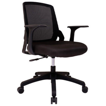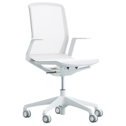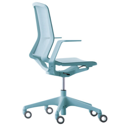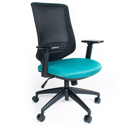 Silla de trabajo con diseño y respaldo en mesh ergonómico.