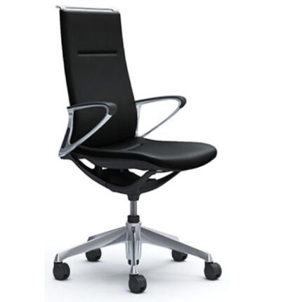 Respaldo en malla y asiento en piel.