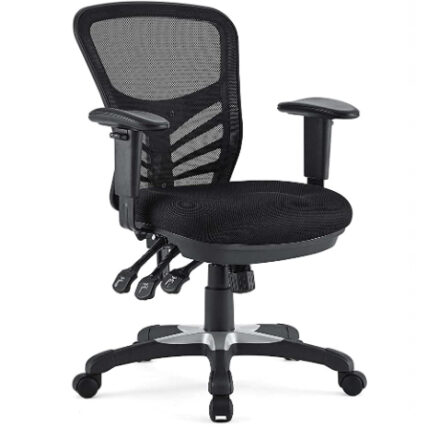 Respaldo tapizado en malla con soporte lumbar ajustable.