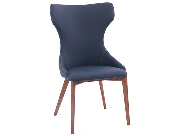 Silla tapizada en imitación piel, con base de madera color nogal.