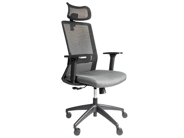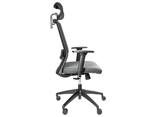 - Respaldo (negro o gris claro) fabricado en polipropileno tapizado en mesh: 50% polyester, 30% TPEE, 20% nylon gris o negro. Soporte lumbar ajustable y acojinado con marco decorativo terminado brillante. Asiento con diseño ergonómico de poliuretano suave parte interna de multiplay de 13mm de espesor con tuercas t-nut para recibir tornillería doble herramental. Brazos ajustables 1D de polipropileno con pad de poliuretano suave. Cabecera ajustable tapizada en mesh. Base de 5 puntas en nylon con cinturón de acero de 28” de diámetro.