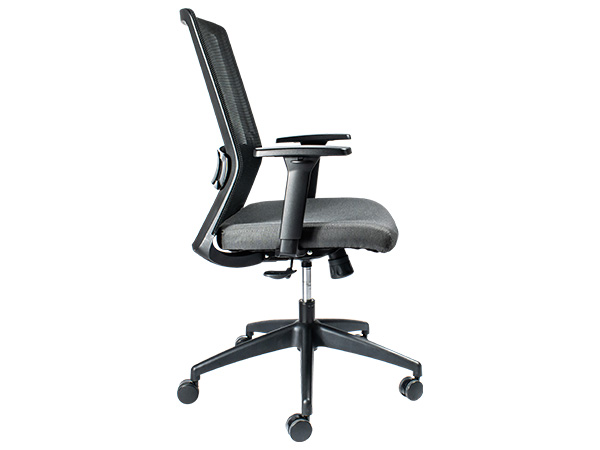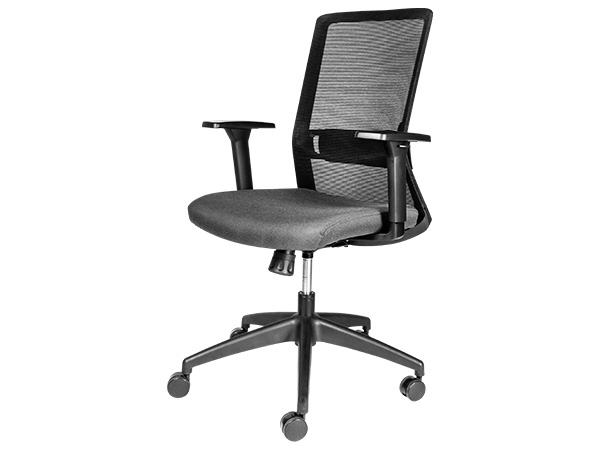 - Respaldo (negro o gris claro) fabricado en polipropileno tapizado en mesh: 50% polyester, 30% TPEE, 20% nylon gris o negro. Soporte lumbar ajustable y acojinado con marco decorativo terminado brillante. Asiento con diseño ergonómico de poliuretano suave parte interna de multiplay de 13mm de espesor con tuercas t-nut para recibir tornillería doble herramental. Brazos ajustables 1D de polipropileno con pad de poliuretano suave. Cabecera ajustable tapizada en mesh. Base de 5 puntas en nylon con cinturón de acero de 28” de diámetro.