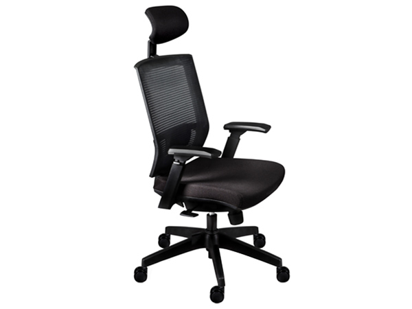 - Respaldo tapizado en malla y almohadilla lumbar ajustable.