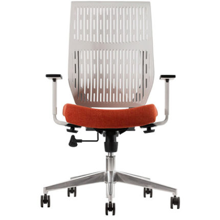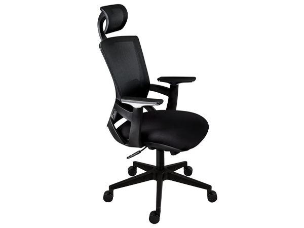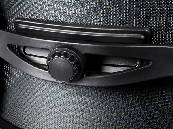 - Respaldo tapizado en malla con soporte lumbar ajustable