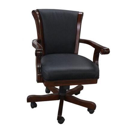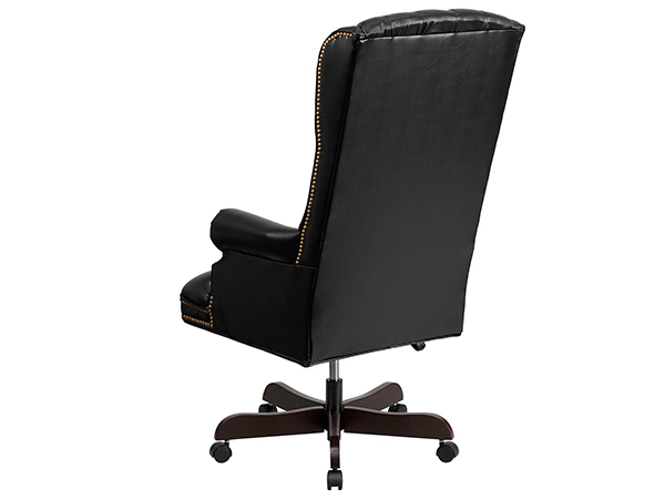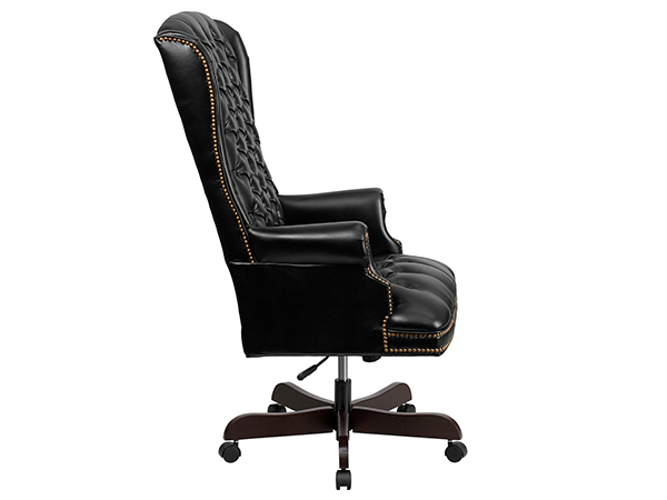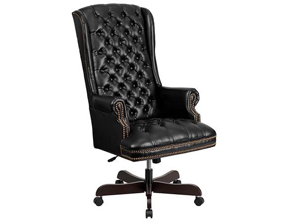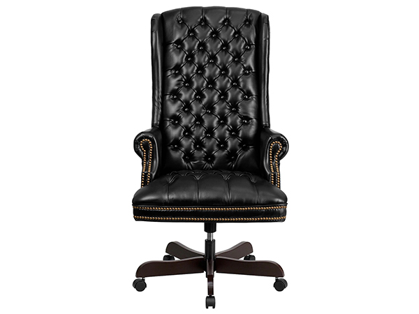 Aumente la productividad en su lugar de trabajo con la silla ejecutiva tradicional que está diseñada ergonómicamente para brindar comodidad mientras trabaja y también es una adición atractiva a su espacio de trabajo. Esta silla de oficina presenta una pantalla negra y está tapizada en cuero. Relaje los brazos con este reposabrazos no ajustable y aproveche al máximo su estilo de brazo fijo, diseñado para pasar largas horas cómodamente sentado. Su respaldo luce un acabado de cuero y un asiento negro. A su aspecto clásico se suma su base de caoba, que se suma a su aspecto general.
