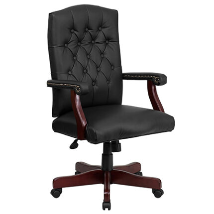Mecanismo de inclinación y giro. Cojines de cuero negro.