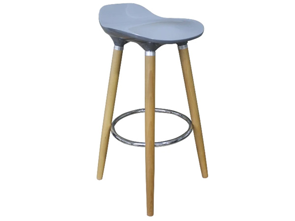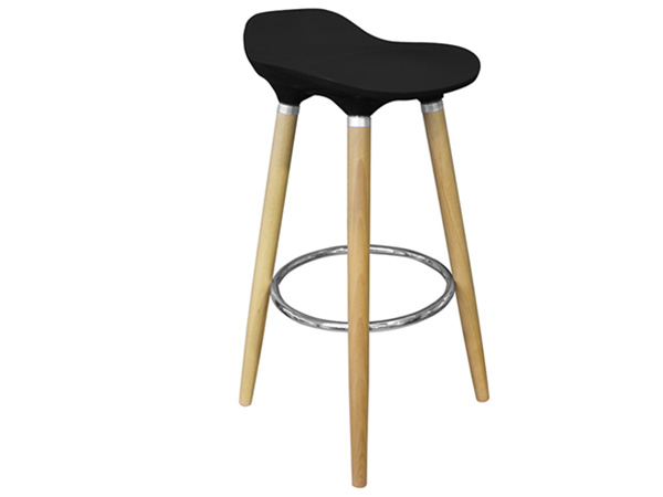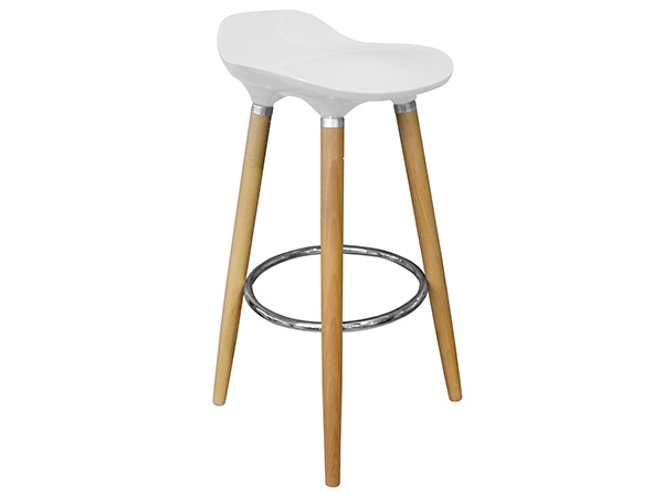 Con patas de madera y una sólida base para apoyar los pies.