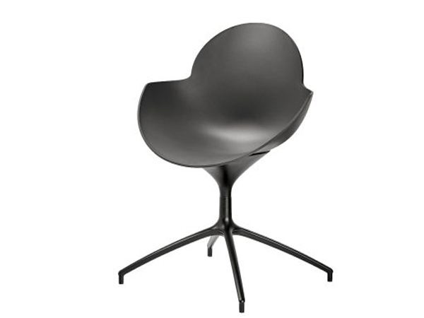 Silla con carcasa en polipropileno y 4 patas en madera.