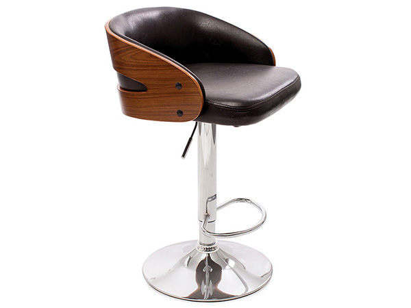 Banco de madera termo formada tapizada, con base hidráulica en metal cromado