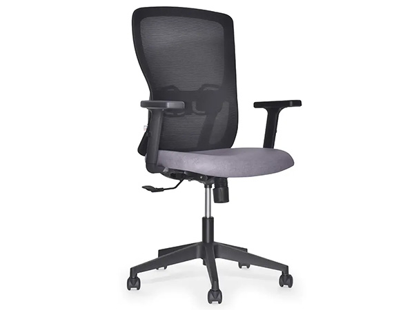 RESPALDO: Marco de polipropileno con brazos de soporte tapizado en malla color negro, cuenta con nervaduras en la parte inferior para mayor resistencia, a la mitad del marco cuenta con soporte lumbar fabricado en polipropileno con ajuste de altura, acabado en color negro.