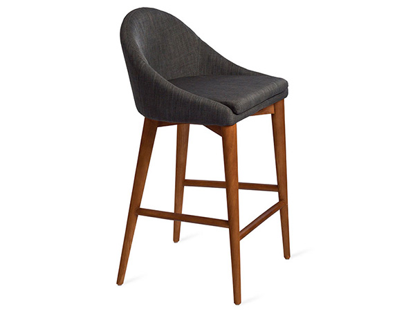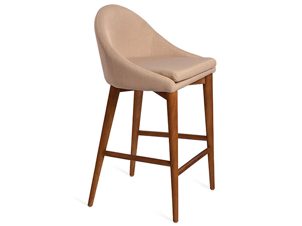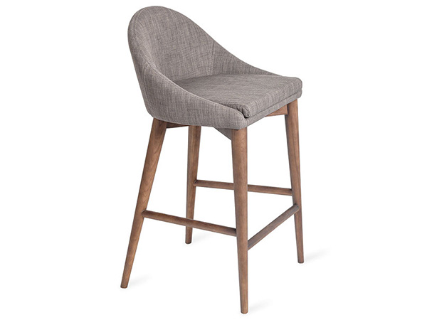 Banco tapizado en tela y base en madera en color nogal.
