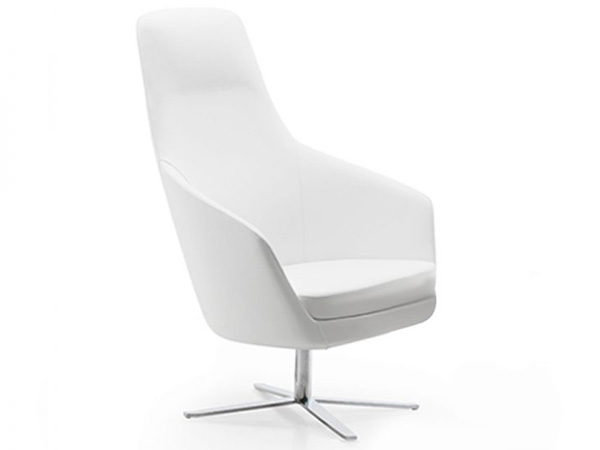 Sillón de 1 plaza con respaldo alto y descansa brazos en poliuretano inyectado y tapizado.
