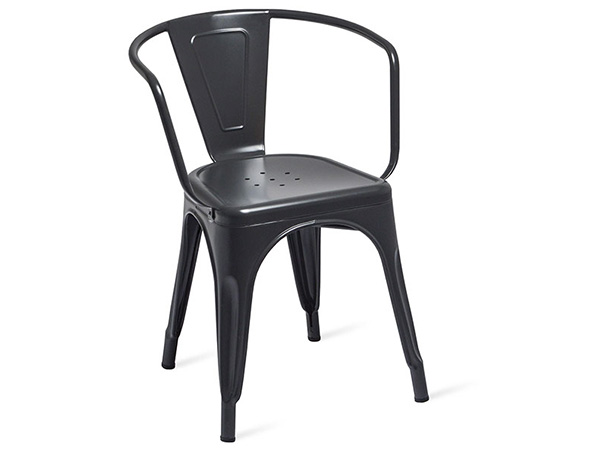 Silla de metal gris.