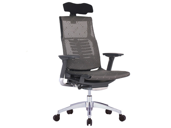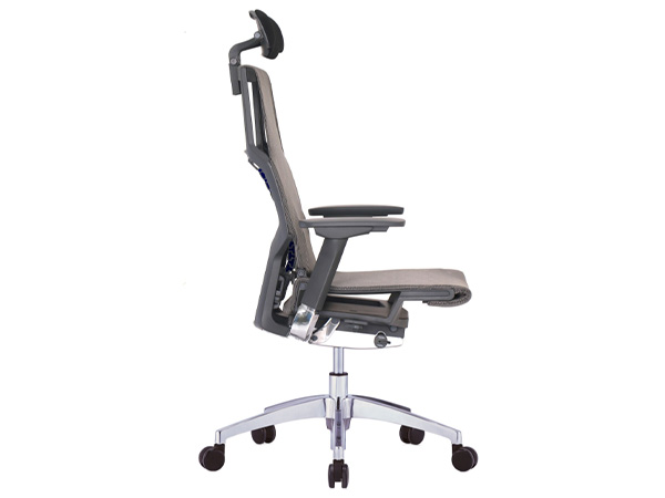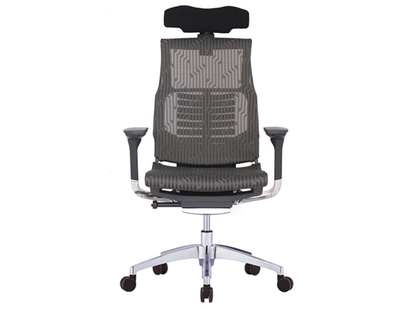 - Silla Polack con aplicación móvil, asiento y respaldo MALLA GRIS OXFORD, marco GRAFITO, Estrella aluminio