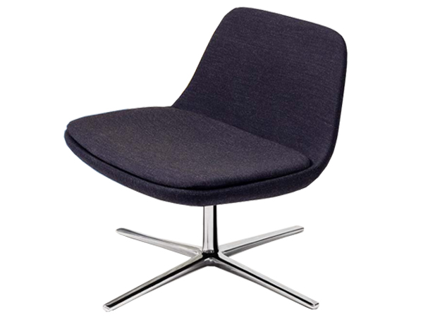 Sillón con carcasa acolchada y asiento en poliuretano expandido y completamente tapizado. Tiene una base giratoria de cuatro radios.
