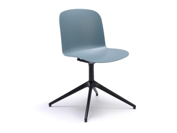 Silla monocarcasa en polipropileno con textura tipo tela y diferentes base en aluminio, acero y versión con rodajas.