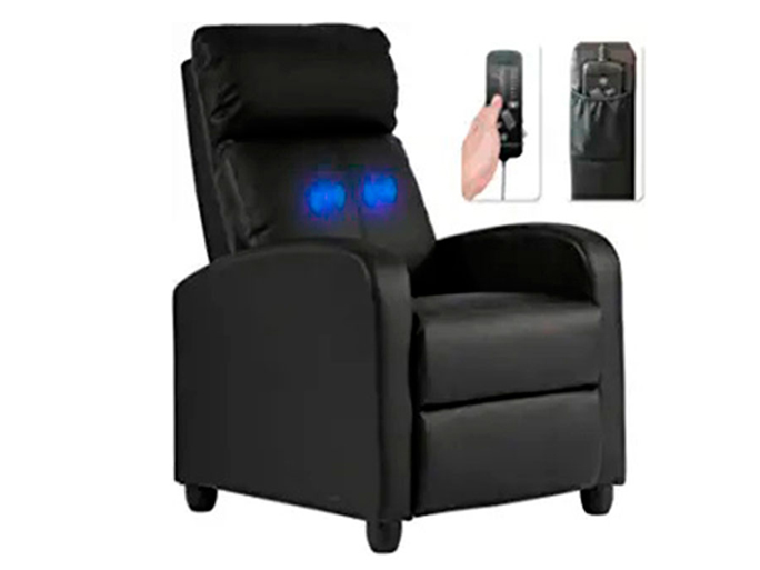 •Modo de masaje: las 8 funciones de la silla reclinable te dan el mejor masaje. La intensidad del sofá reclinable te da la mejor relajación. Masaje de 2 puntos en la cintura. Sillón reclinable individual para sala de estar.
