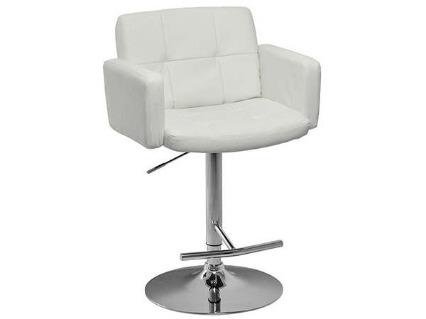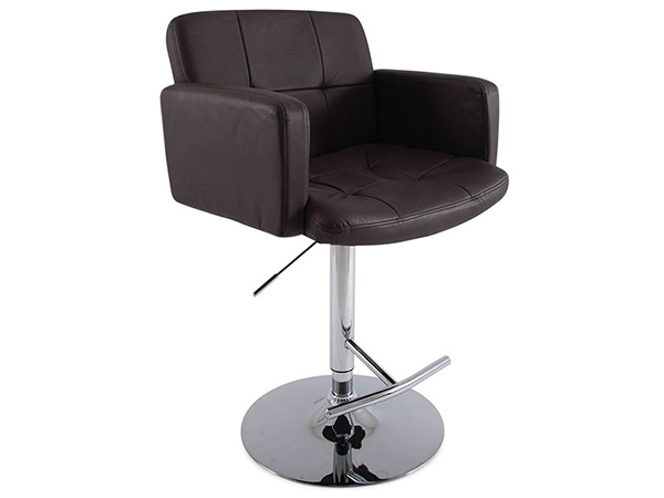 Banco con brazos tapizado en imitación piel con base hidráulica en metal cromado.
