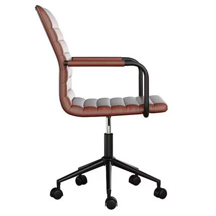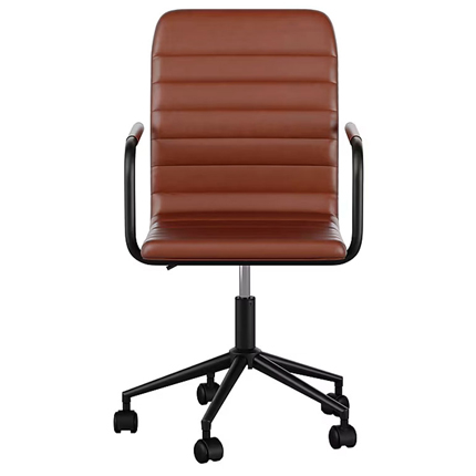 •Esta silla de escritorio de cuero sintético presenta un marco de níquel pulido con apoyabrazos integrados.