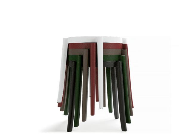 TORRE, disponible como silla y como taburete, está completamente fabricado en polipropileno y se puede apilar verticalmente, lo que permite aprovechar al máximo el espacio donde sea necesario.