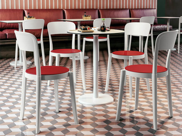 Estos últimos elementos, inspirados en las tradicionales sillas bistró, confieren al producto un carácter amable y clásico, apto para diferentes ambientes, modernos o no, interiores o exteriores.