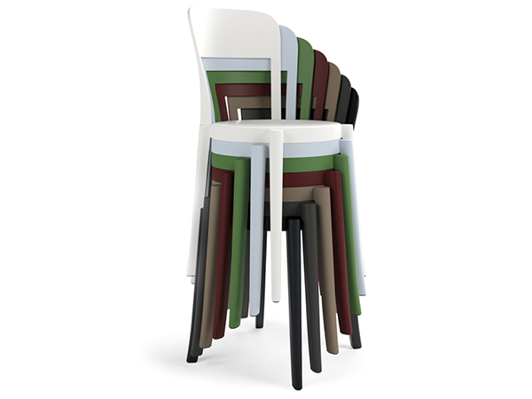 TORRE, disponible como silla y como taburete, está completamente fabricado en polipropileno y se puede apilar verticalmente, lo que permite aprovechar al máximo el espacio donde sea necesario.