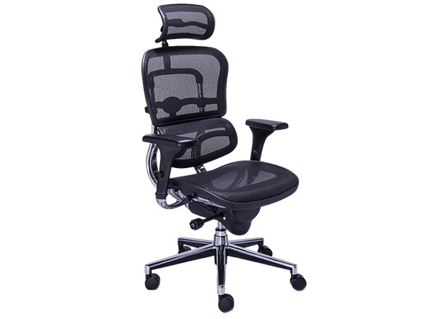 Cabecera con ajuste de altura gradual en tres posiciones para brindar al usuario máxima comodidad. Descansa brazos estructurados en aluminio pulido, con coderas en poliuretano tipo gel, 3D ajuste de altura, giratorios y desplazamiento frontal. Respaldo con diseño ergonómico y soporte lumbar flotante, ajuste de altura del respaldo gradual.