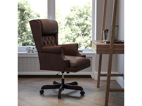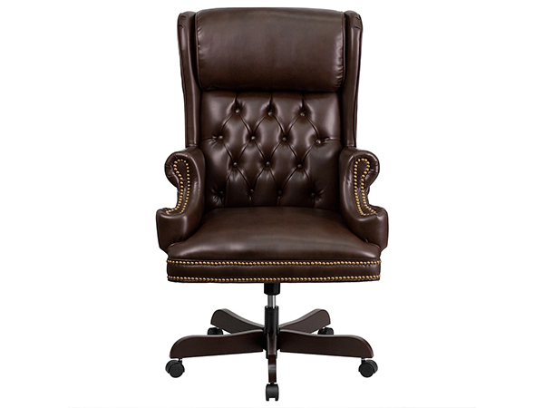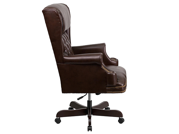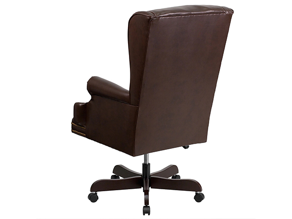 Las largas horas de trabajo son pan comido con la silla ejecutiva tradicional marrón garantiza comodidad y apoyo. Para mayor suavidad y amortiguación, esta silla ejecutiva con respaldo alto tiene tapicería de cuero de alta calidad. Su mecanismo neumático de ajuste de la altura del asiento te permite regular la altura del asiento para conseguir una buena posición de sentado. Puede cambiar el ángulo del respaldo con la ayuda del mecanismo de inclinación que le permite reclinarse con facilidad mientras lee o trabaja. Para facilitar el movimiento, la silla viene con una función giratoria.