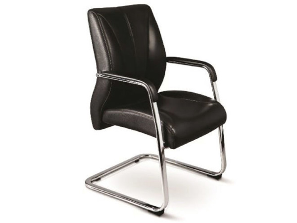 Silla de Visita respaldo de estructura de madera con diseño ergonómico, con espuma estándar de 6 cm de de espesor y 45kg/m3 de densidad, tapiz frente de piel vacuno de alta calidad y parte trasera en vinil, asiento con espuma estándar tapizado con piel vacuno de alta calidad, patín de tubo oval cromado de alta calidad con espesor de 2 mm, brazos fijos de metal cromado sujetos al asiento y al respaldo con coderas tapizadas en vinil.