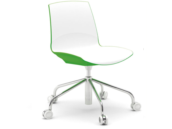 Silla bi color en polipropileno con la parte interna en blanco mate. Adapatable a diferentes estructuras.